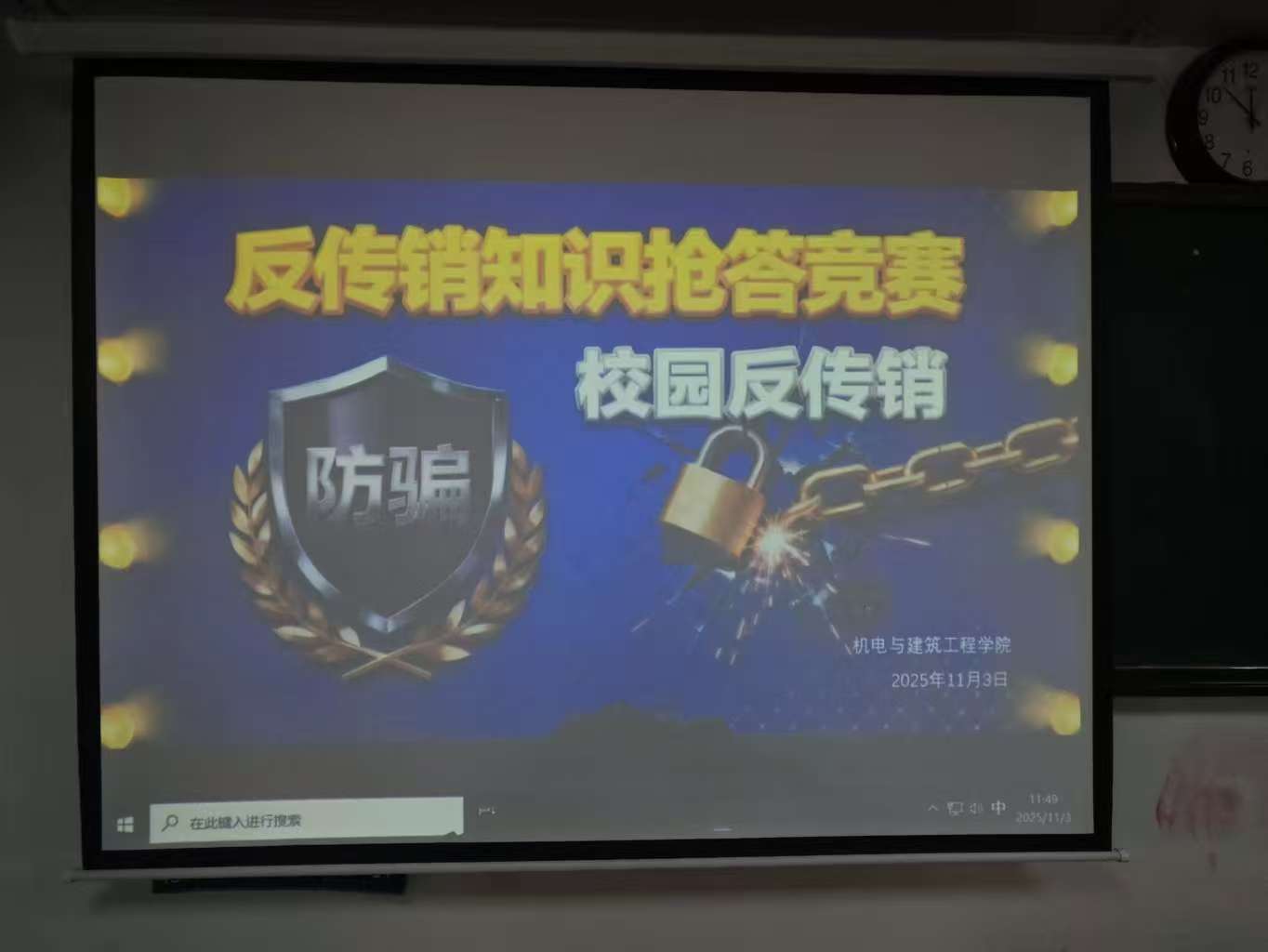 为了增强学生对传销手段的识别与防范能力,营造良好的校园反传销氛围,bat365正版唯一官网于11月3日在二教209与217教室开展“以知为基,以竞促学,共赴知识盛宴”反传销知识抢答竞赛活动。