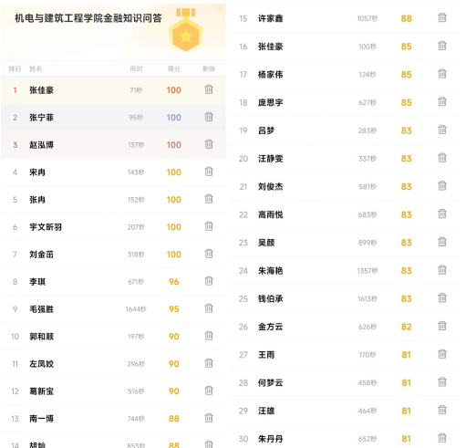 通过本次知识竞赛,提高机建学子征信意识、金融意识、风险意识、法律意识,树立正确的消费观,荣辱观、价值观,共同推动社会信用体系的建设与完善,为建设美好社会贡献力量。